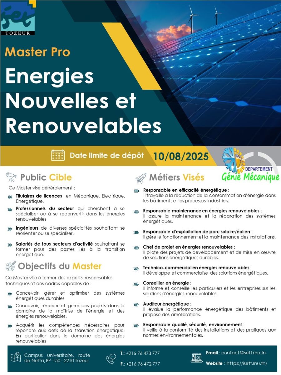Mastère professionnel en Energies nouvelles et renouvelables